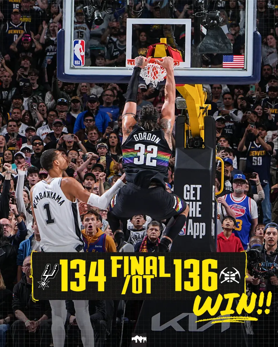 北京时间4月5日,NBA常规赛,丹佛掘金鏖战加时赛136-134险胜圣安东尼奥马刺拿到八连胜,而马刺的11连胜被终结。这场比赛被誉为是约基奇VS文班亚马的MVP之争,最终约基奇在末节连拿7分帮助掘金取胜,数据方面也是约基奇完成压制文班亚马,两人依旧在一个档次。